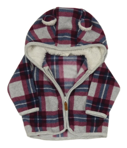 Sivo-vínovo-tmavomodrá kockovaná fleecová prepínaci mikina s kapucňou H&M