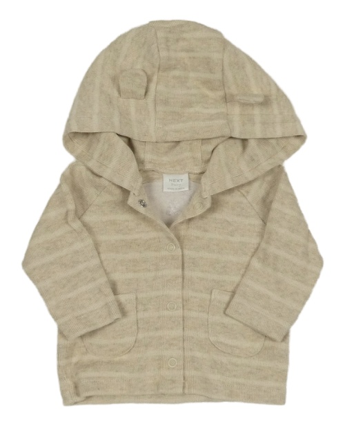 Béžovo-biely pruhovaný prepínaci sveter s nápisom a kapucňou Next