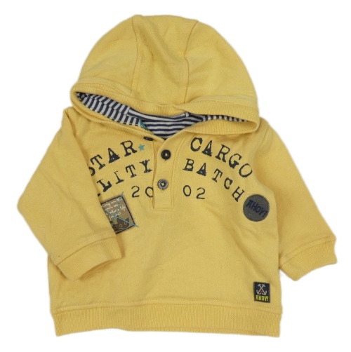 Žltá mikina s nápismi a nášivkami a kapucňou M&S