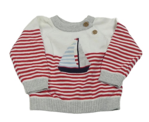 Bílo-červený pruhovaný svetr vs loďkou Nutmeg