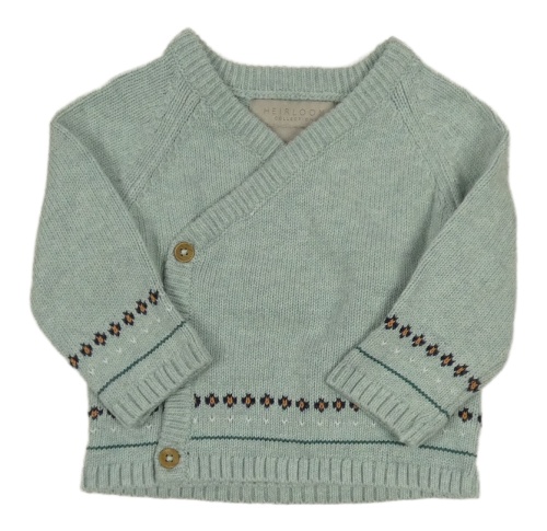Nové - Svetlomodrý zavinovací vlnený sveter so vzorom John Lewis
