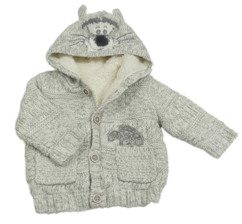 Sivý melírovaný pletený zateplený sveter s kapucí - tiger George