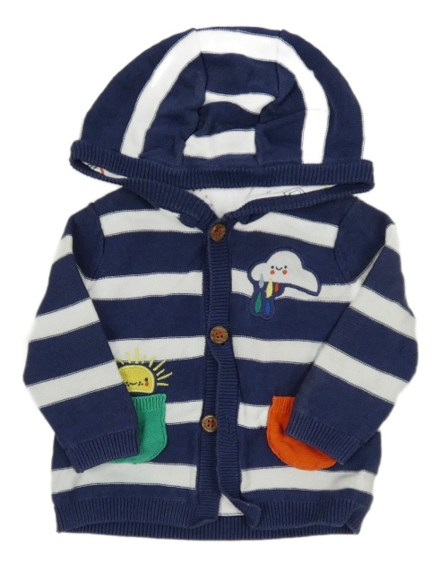 Tmavomodro-biely pruhovaný podšitý prepínaci sveter s mrakem a kapucňou Mothercare