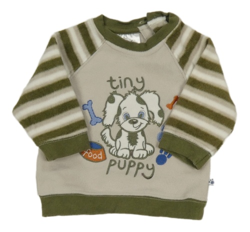 Béžovo-khaki pruhovaná fleecová mikina s psíkom