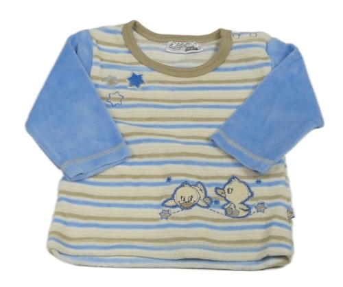 Bielo-béžovo-modrá pruhovaná zamatová mikina s kačery a hviezdičkami Ergee