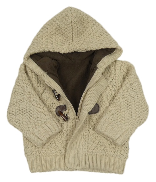 Smotanový pletený podšitý prepínaci sveter s kapucňou Nutmeg