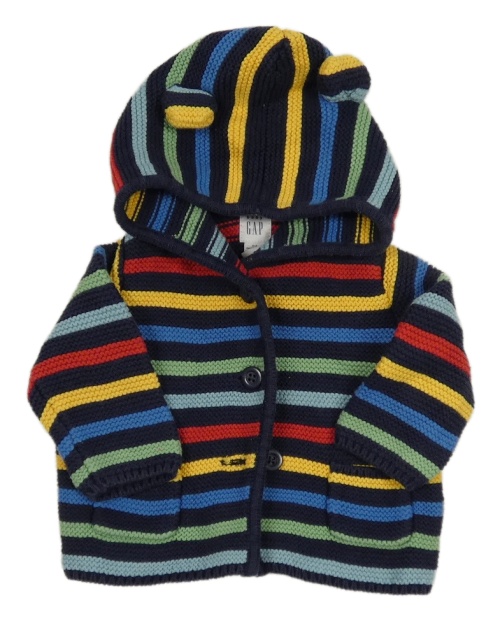 Tmavomodro-farebný pruhovaný prepínaci sveter s kapucňou GAP