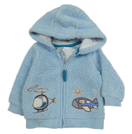 Svetlomodrá huňatá prepínaci mikina s lietadlom a kapucňou