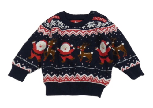 Tmavomodro-červený vzorovaný vianočný sveter Primark