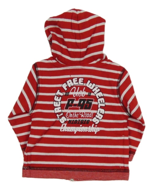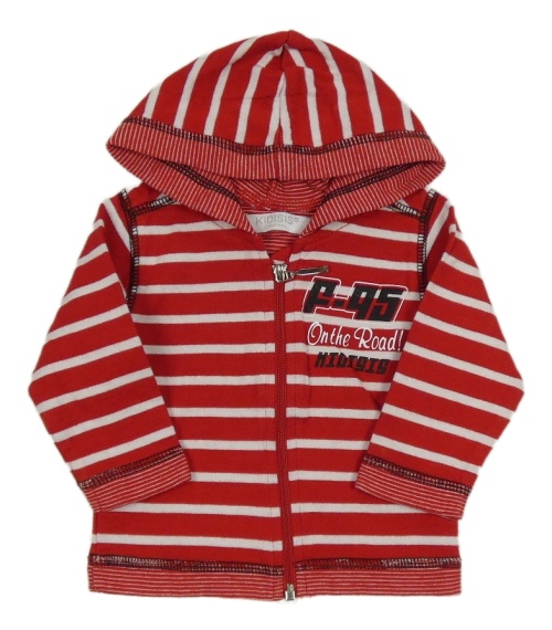 Červeno-biela pruhovaná prepínaci mikina s nápismi a kapucňou