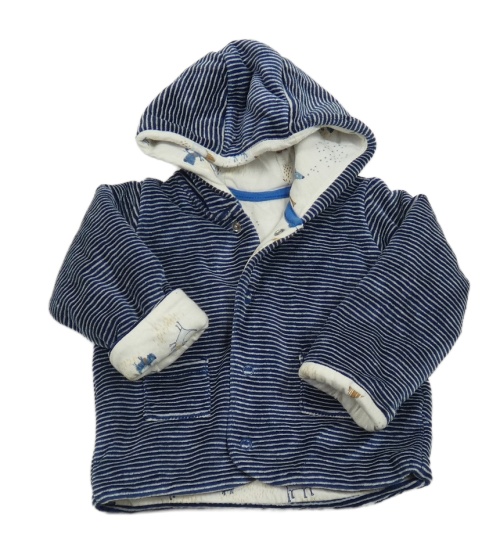 Tmavomodro-biela pruhovaná zamatová zateplená prepínaci mikina s kapucňou M&S