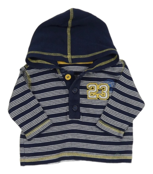 Tmavomodro-biela pruhovaná mikina s číslom a kapucňou George