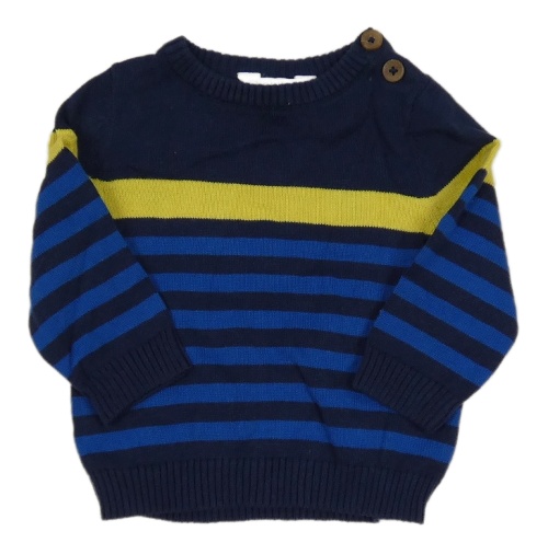 Tmavomodro-modro-žltý sveter s pruhmi M&Co.