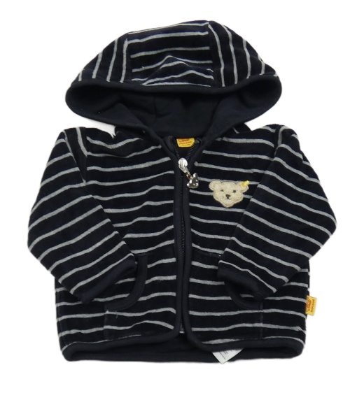 Čierno-sivá pruhovaná zamatová podšitá prepínaci mikina s medvěďom a kapucňou