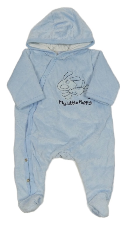 Svetlomodrá zamatová rebrovaná kombinéza so zajícem a kapucňou