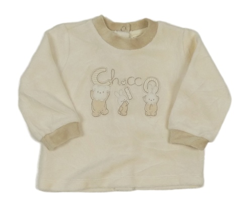 Smotanová zamatová mikina s králíčky a medvěďom