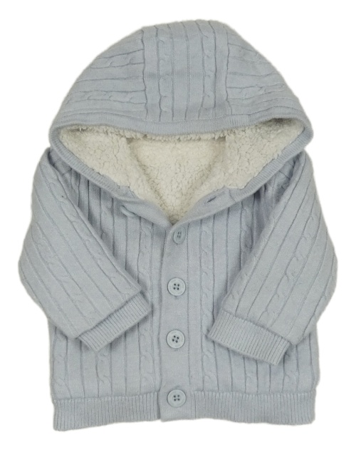 Svetlomodrý rebrovaný vzorovaný prepínaci zateplený sveter s kapucňou little nutmeg