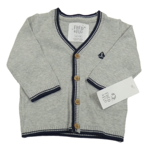 Nové - sivý ľahký prepínaci sveter s tmavomodrým lemem F&F