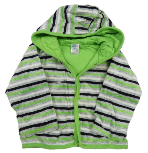 Sivo-čierno-bielo-zelená pruhovaná melírovaná zamatová prepínaci podšitá mikina s kapucňou Topomini