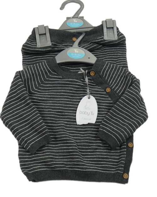 Nové - Tmavosivý prúžkovaný prepínaci svetr + pletené tepláky TU