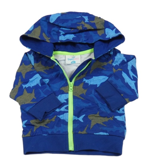 Zafírová prepínaci mikina so žralokmi a kapucňou Topomini