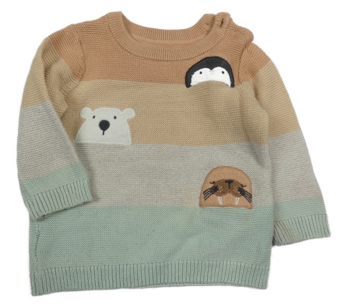 Béžovo-sivo-zelený sveter so zvieratkami F&F