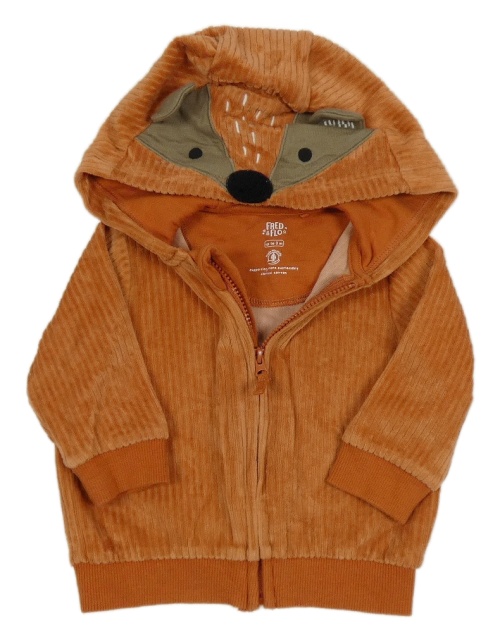 Skořčicová zamatová rebrovaná prepínaci mikina s kapucí - líška F&F