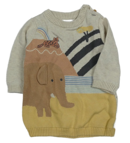 Béžovo-žlto-hnedý sveter so slonom a gepardem F&F