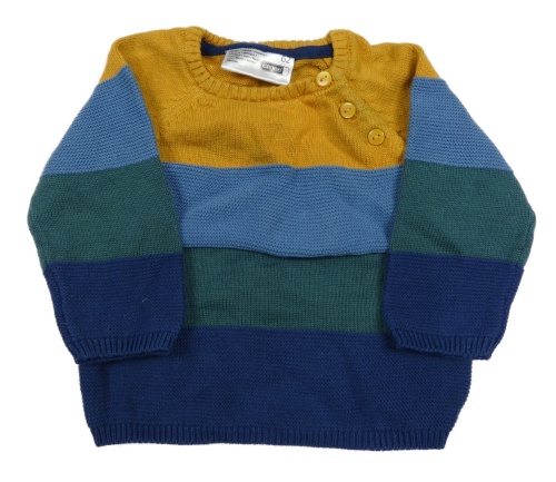 Okrovo-modro-zelený pruhovaný sveter Ergee