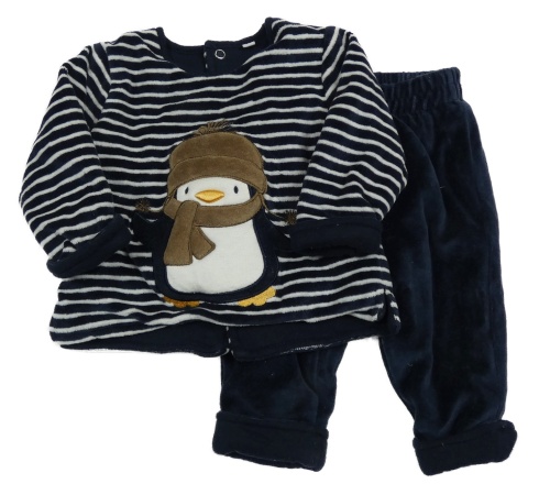 2Set - Tmavomodro-biela pruhovaná zamatová zateplená mikina s tučňáčkem + tepláky