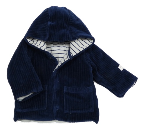 Tmavomodrá rebrovaná zamatová zateplená prepínaci obojstranná mikina s kapucňou M&S