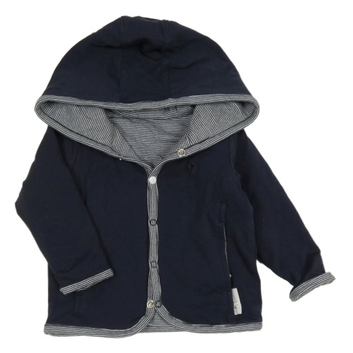 Tmavomodro-biela pruhovaná prepínaci obojstranná mikina s kapucňou
