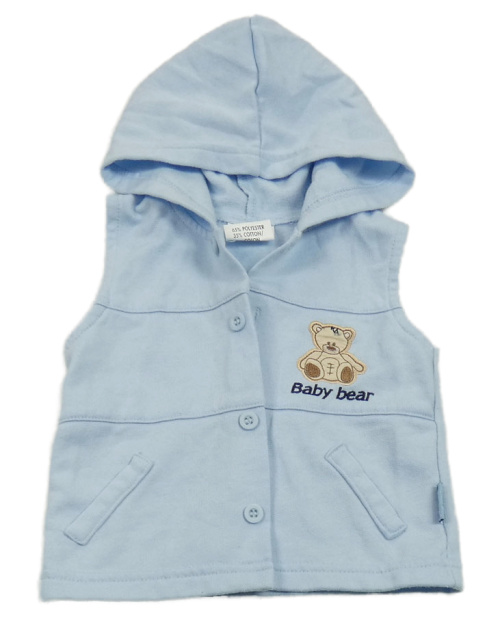 Svetlomodrá tepláková prepínaci vesta s medvěďom a kapucňou