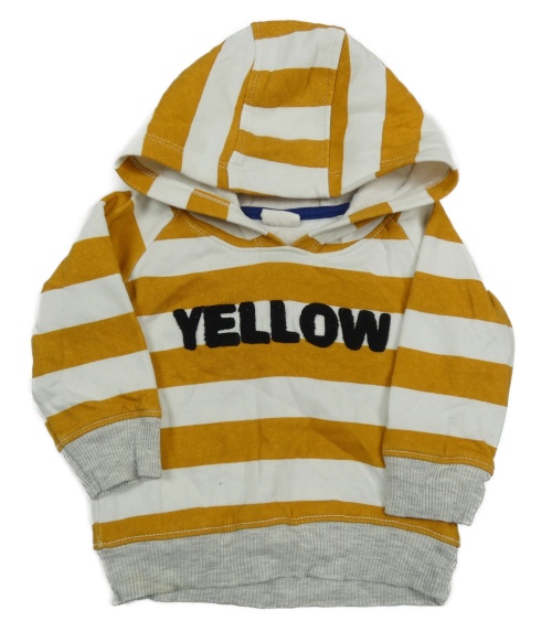 Medovo-bielo-sivá pruhovaná mikina s nápisom a kapucňou HEMA