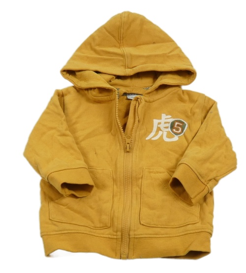 Horčicová prepínaci mikina s potlačou a kapucňou