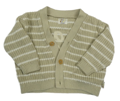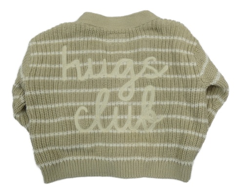 Béžovo-biely pruhovaný prepínaci sveter s nápisom Maybe