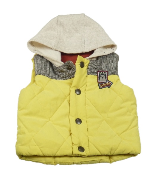 Žlto-béžová šušťáková zateplená vesta s teplákovou kapucňou Nutmeg