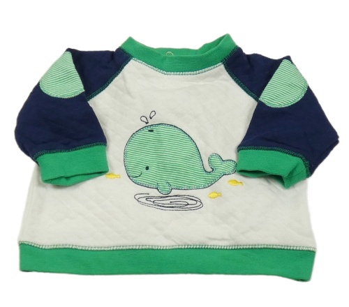 Bielo-tmavomodro-zelená mikina s velrybou Little Me