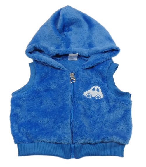 Modrá chlpatá prepínaci vesta s autom a kapucňou
