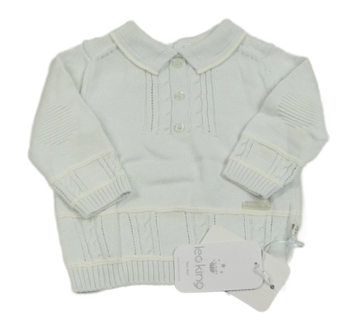 Nové Bielo-svetlomodrý vzorovaný sveter s golierikom