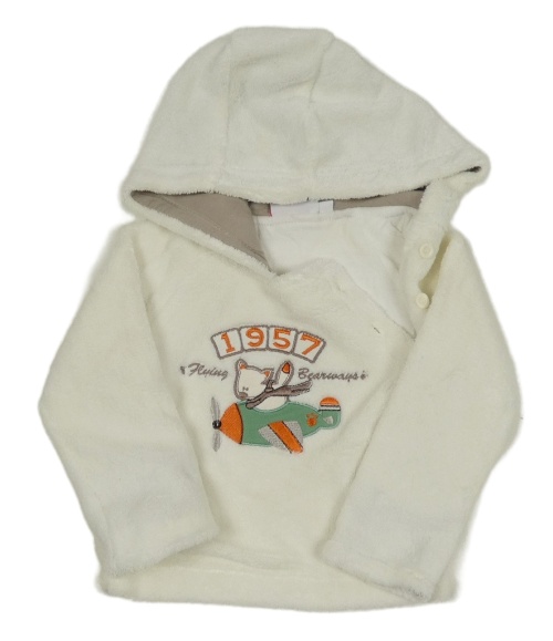 Biela chlpatá podšitá mikina s lietadlom a kapucňou NKD