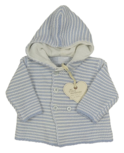 Modro-biely pruhovaný vlnený sveter s kapucňou Next
