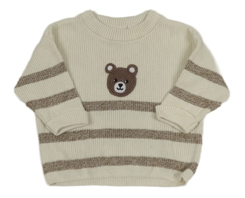 Smetanovo-hnedý pruhovaný sveter s medvěďom Next