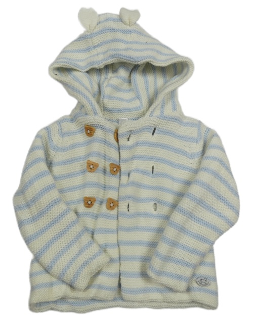 Bielo-modrý pruhovaný prepínaci sveter s kapucňou