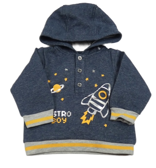 Tmavomodro-sivá melírovaná mikina s raketou a planetou a kapucňou