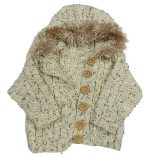 Béžový melírovaný prepínaci sveter s kožešinou na kapuci