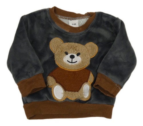 Sivo-hnedá plyšová zateplená mikina s medvěďom
