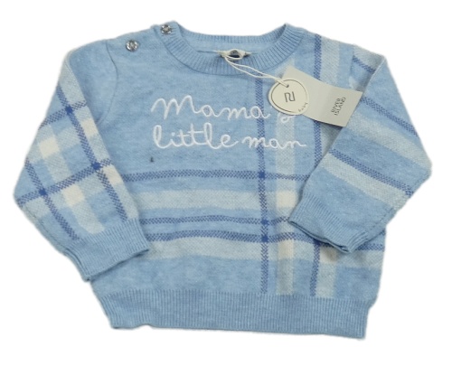 Nové - Svetlomodrý melírovaný sveter s kockovaným vzorom a nápisom River Island