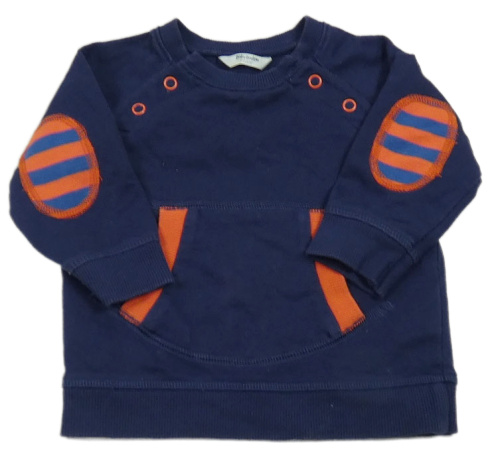 Tmavomodrá mikina s oranžovými nášivkami boden