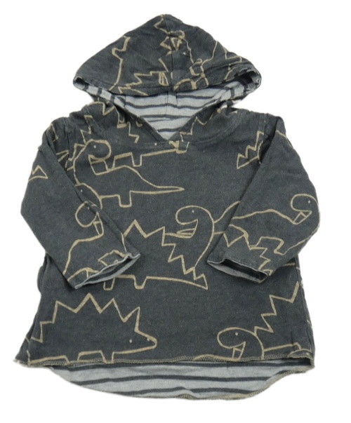 Tmavosivá melírovaná podšitá obojstranná mikina s dinosaurami a kapucňou Next